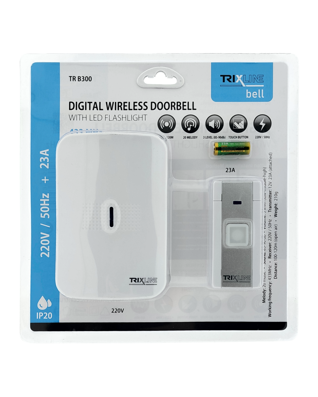 Bezdrôtový zvonček Trixline BELL je skvelé riešenie všade tam, kde nie je možné nainštalovať klasické drôtové pripojenie. Medzi hlavné prednosti patrí veľmi jednoduchá montáž, prevádzka tlačidla na batérie.