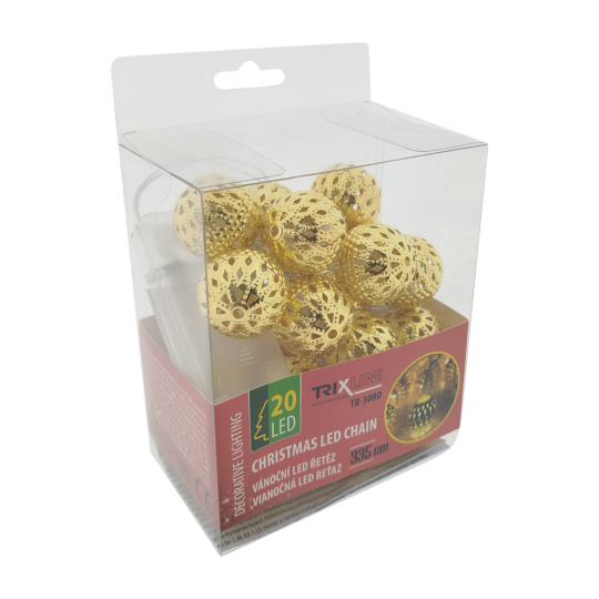 Bezpečnostné informácie (PDF)TR 308D Vianočná reťaz Marocké gule 20LED 3,35 m 2700K teplá biela Trixline